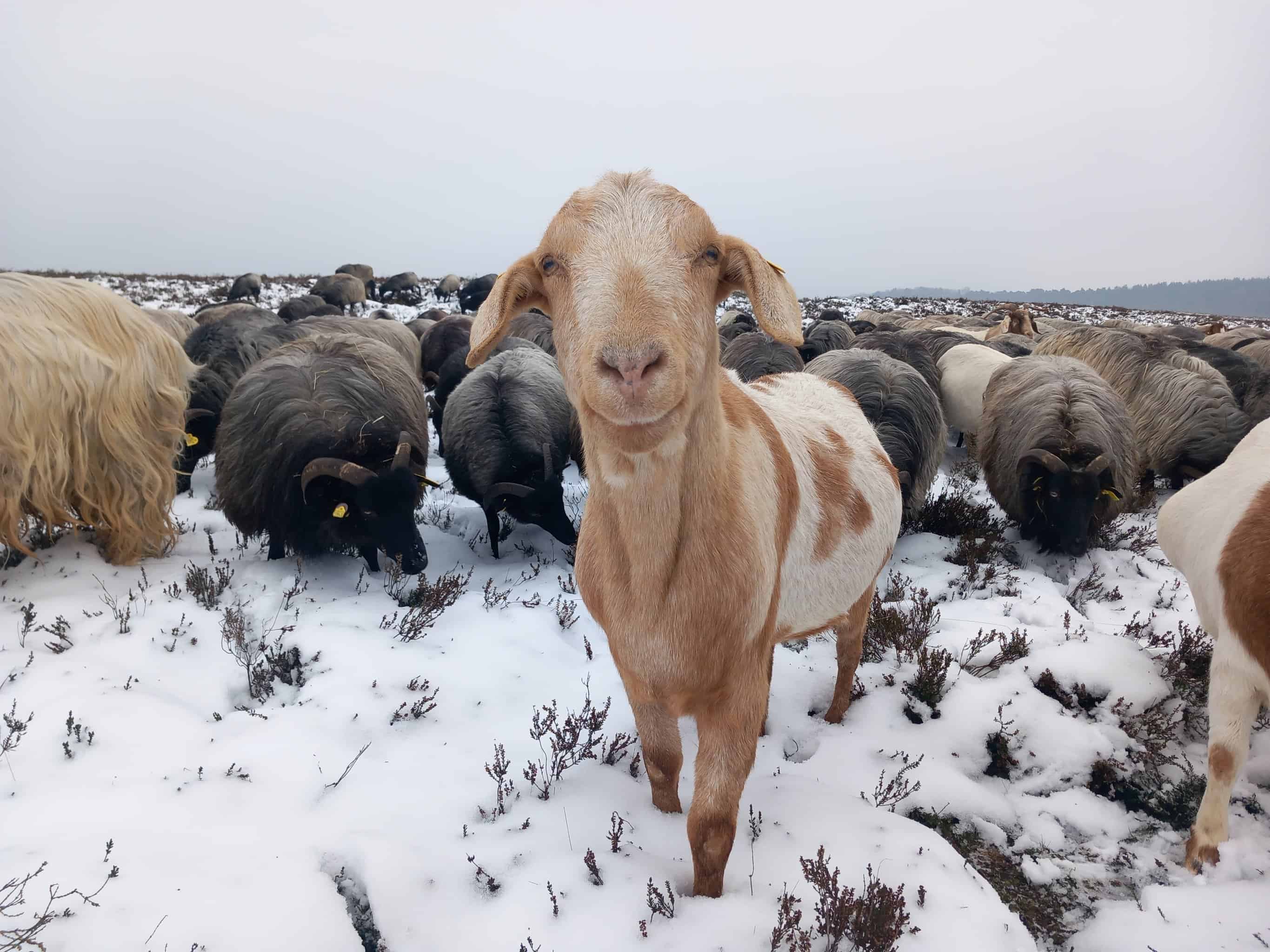 Rund 2.200 Mutterschafe der Rasse „Graue gehörnte Heidschnucke“ und 300 Ziegen werden täglich von den Schäferinnen und Schäfern des Landschaftspflegehofes im Naturschutzgebiet gehütet.